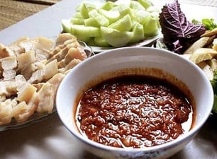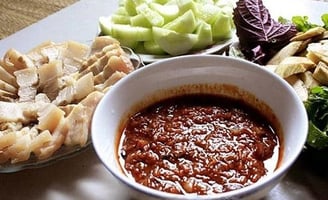 Thịt luộc: Thịt ba chỉ, thịt chân giò, thịt bò luộc chấm với mắm cáy cũng là một sự kết hợp hoàn hảo.