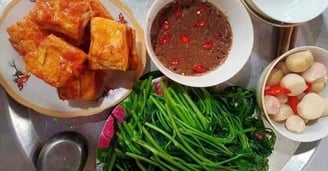Rau luộc: Rau muống, rau lang, rau cải, bí xanh, bầu bí... khi luộc chín chấm với mắm cáy pha loãng, thêm chút ớt và tỏi băm sẽ rất ngon miệng.